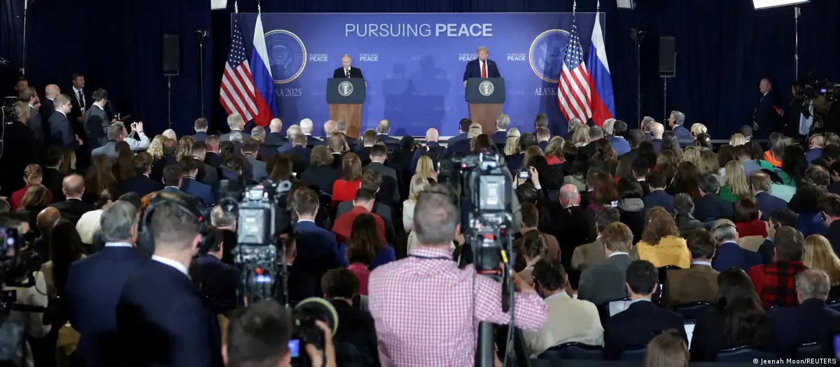 Trump y Putin celebran una conferencia de prensa tras su reunión para negociar el fin de la guerra en Ucrania, en la Base Conjunta Elmendorf-Richardson, Alaska, Estados Unidos.